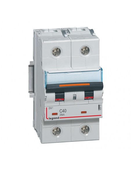 Disjoncteur DX³ 25kA arrivée haute et départ bas à vis 2 Pôles 400V 40A courbe C