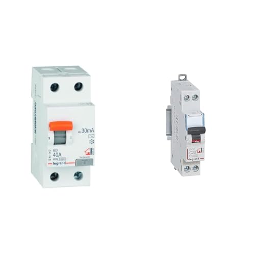Legrand 402057E, interrupteur différentiel, 2P 40 A, sensibilité de 30 mA, classe AC, RX3 & Disjoncteur Phase + Neutre - 20A - bornes à vis - 1 module