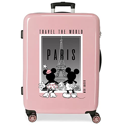 Disney Mickey et Minnie Travel the World Paris Valise Moyenne Nude 48x68x26 cms ABS Rigide Fermeture latérale à combinaison 70L 3 kgs 4 Doubles roues