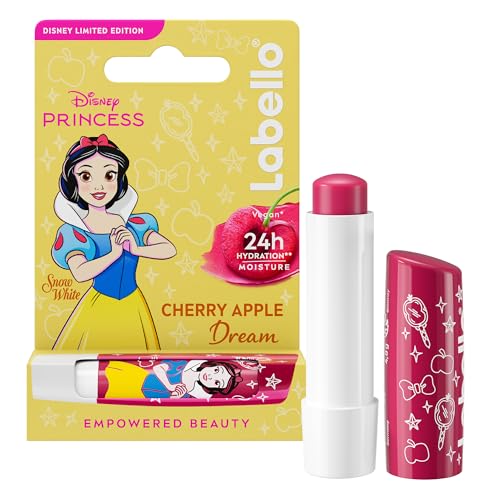 LABELLO Baume à lèvres Édition Limitée Disney Princesse Blanche-Neige Cherry Apple Dream 1x 4,8 g — Stick à lèvres hydratant pour enfants — Baume parfumé à la cerise