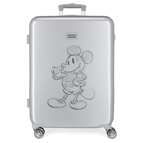 Disney Mickey 100 Valise Moyenne Grise 48x68x26 cms Rigide ABS Serrure latérale à combinaison 70L 3 kgs 4 Doubles roues