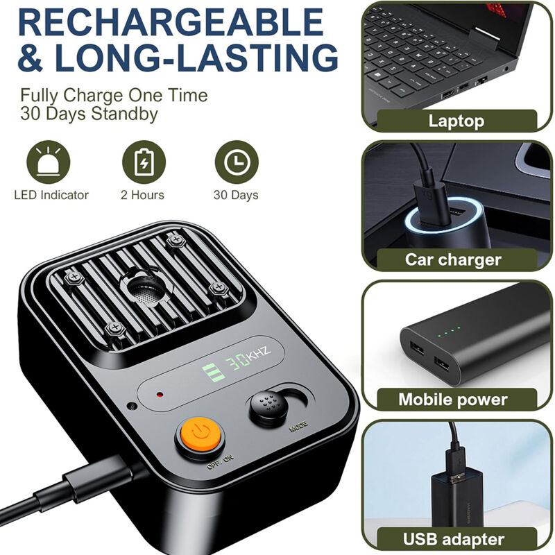 Anti Aboiement pour Chien, Dispositif Anti Aboiement ,33 Pieds Rechargeable Dispositif Dissuasion pour Petits et Grands Chiens Exterieu, Anti-Aboiement Chiens Ultrason pour Chien Anti Aboiements pour