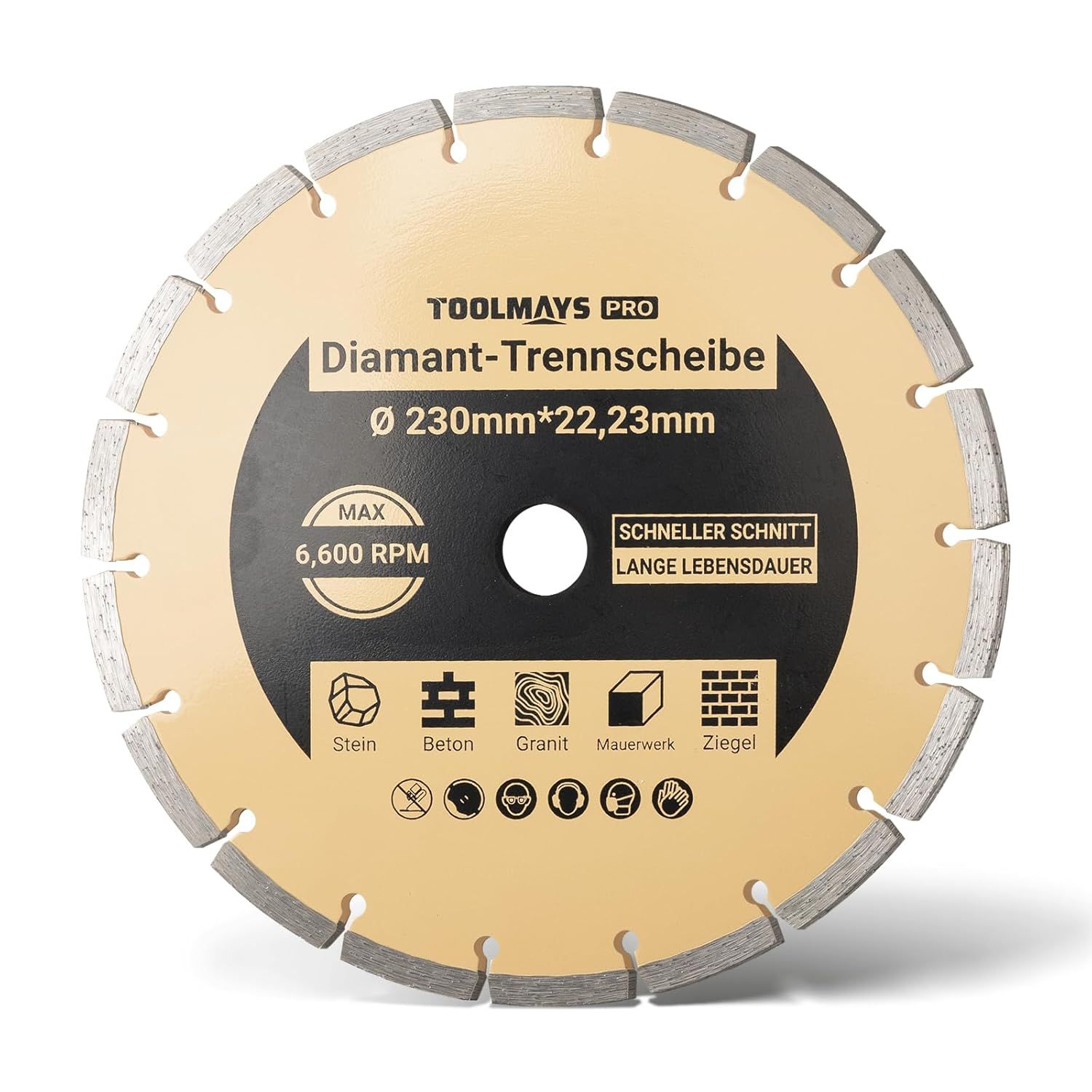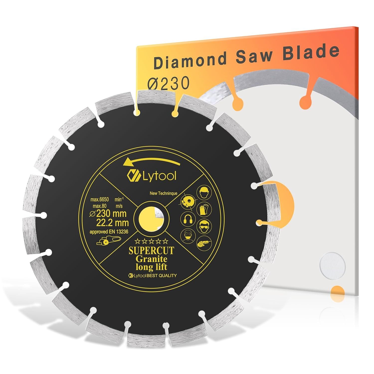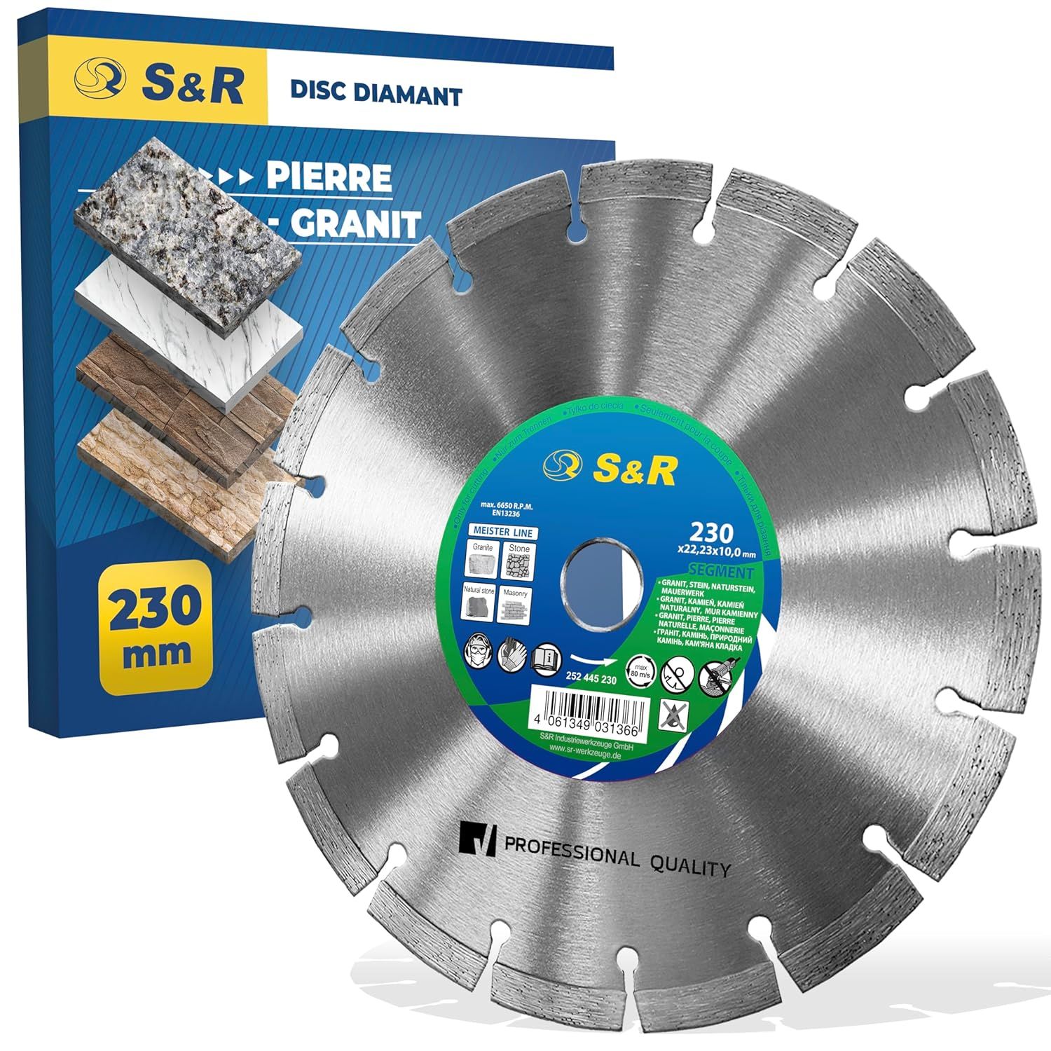 S&R Disque Diamant 230 à Tronçonner Béton carregale Granit Marbre Briques Maçonnerie. Lame 230 pour meuleuse Bosch Makita Dewalt etc