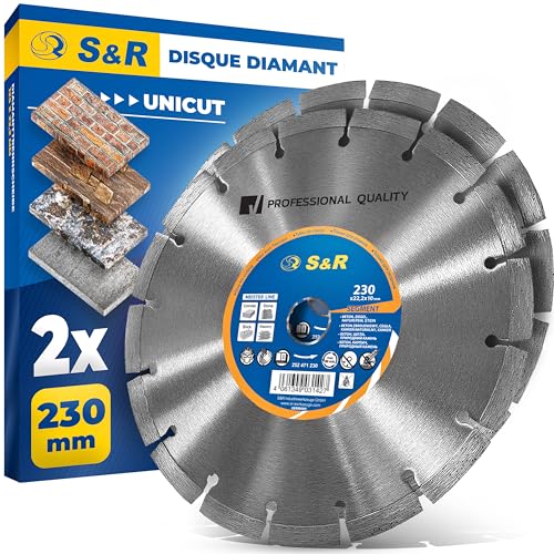 S&R Disque Diamant 230 à Béton. Disque diamant Meuleuse 230 à tronçonner Béton, Pierre, Brique. Lot de 2 Meule diamantée 230mm
