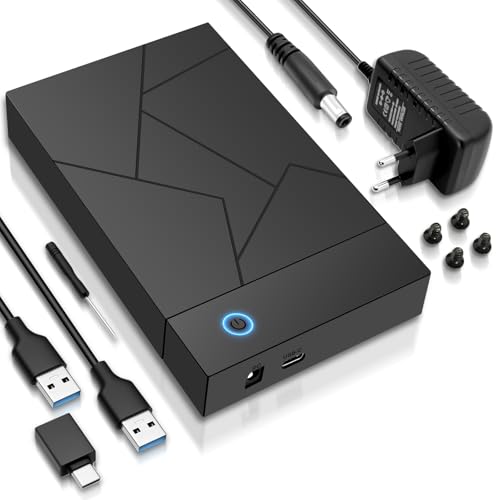 Boitier Disque Dur 3.5, 6Gbps UASP Boitier Disque Dur Externe USB 3.1 pour SSD/HDD, Boitier SSD Externe 2.5"/3.5", Adaptateur SATA USB pour Windows/Mac/Vista avec Adaptateur Type-C