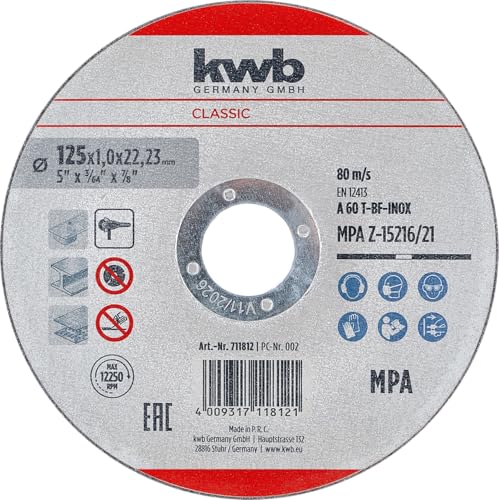 kwb Disque à tronçonner 125 mm pour inox et acier (extra fin, 1,0 mm, coupes nettes, pour meuleuse d'angle)