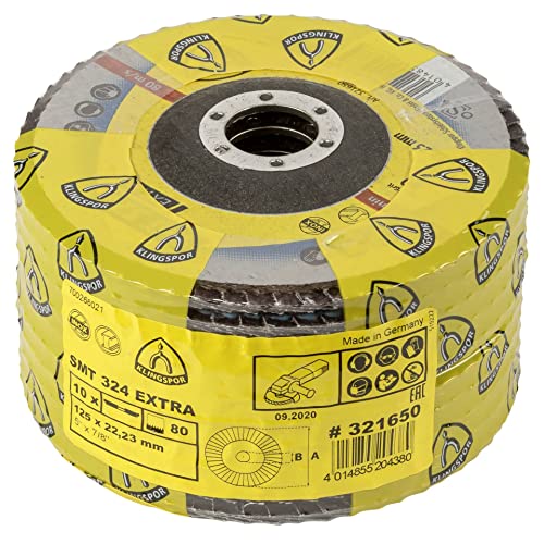 KLINGSPOR schleifmopteller sMT 324, Disque Abrasif Meuleuse 125 x 22,23 mm, Grain 60, 10 Pièces - 321512 Bombée
