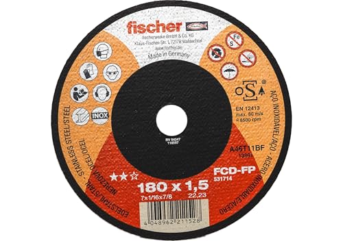 Fischer FCD-FP 180 x 1,5 inox Disque de coupe pour métal et acier inoxydable haute performance, type 41 assiette, pour meuleuse d'angle, 1 pièce