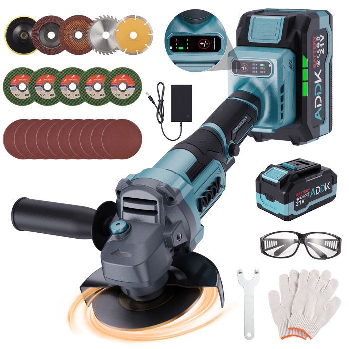 Meuleuse dangle électrique sans fil 125mm - Disqueuse sans balais 21V - 3 Vitesses - 2 Batteries 3Ah - Avec 4 Disques abrasifs
