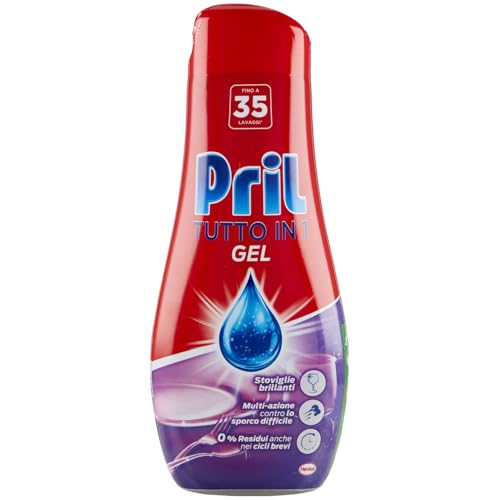 Pril Gel All in One Dissolvant Graisse Lessive Lave-vaisselle Liquide Multi-Action Sale Difficile, Pack de 35 Lavages