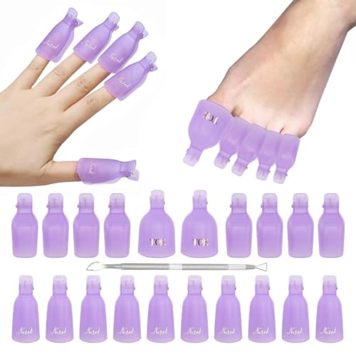 OOTDAY Clips de dissolvant pour vernis à ongles, double pousse-cuticules en métal, vernis à ongles, clips de trempage pour ongles, violet, Lot de 20