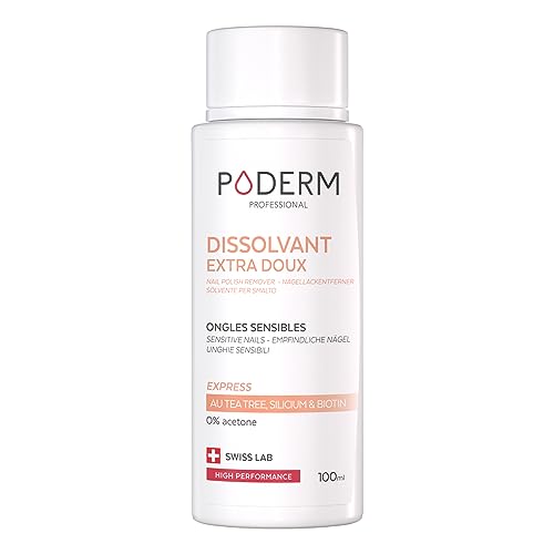 Poderm - Dissolvant sans acetone extra doux au tea tree - Retrait express & facile du vernis à ongles - Fortifiant & nourrissant pour les ongles sensibles - 100 ml - Swiss Lab