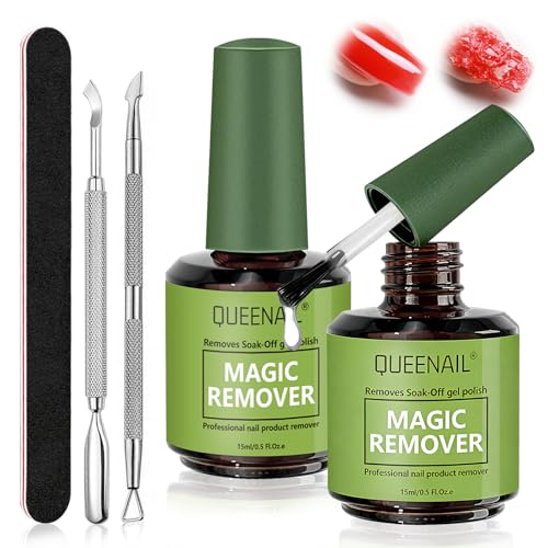 Dissolvant Remover Vernis Semi Permanent Avec Limes à Ongles et Grattoir à Cuticules, Retrait Rapide et Facile du Vernis à Ongles en Gel, 2Pcs