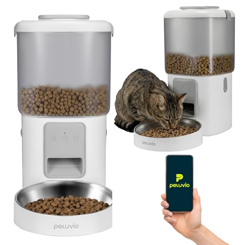 Peluvio Crispy Wi-FI Distributeur Automatique Chat, Distributeur Croquettes Chat avec Application Peluvio Smart, Programmable Jusqu’à 10 Repas, Message Vocal, Secours sur Piles, 4,5 L (White)