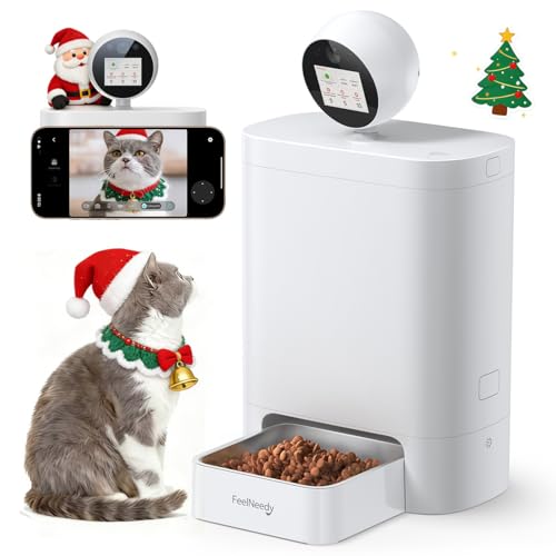 FEELNEEDY 5.5L Distributeur Croquettes Chat Automatique avec HD 3MP 360°Caméra, Wi-FI 2.4G/5G IA Distributeur Croquettes Chien avec Vision Nocturne, Audio Bidirectionnel, Écran IPS & APP Contrôle