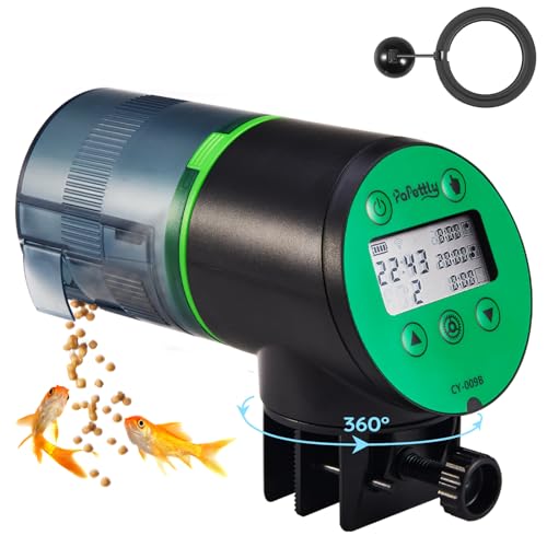 Automatique Distributeur Nourriture Poisson Aquarium - Papettly 200ml Distributeur Poisson Automatique Minuterie Tortue Vacances avec Ecran LCD, Inclure 2 Piles AAA & Poissons Nourriture Anneau, Vert