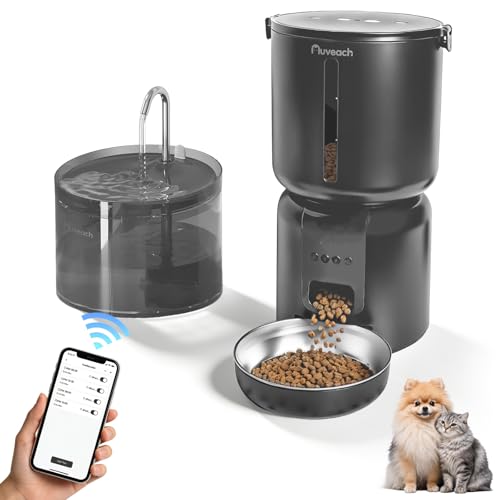 Auveach Distributeur Croquettes Chat Automatique et Fontaine Set - 4L WiFi 2,4G Gamelle Automatique Programmable 1-10 Repas/Jour, Enregistrement Vocal 10S, 2.2L Fontaine à Eau pour Chats (Foncé)