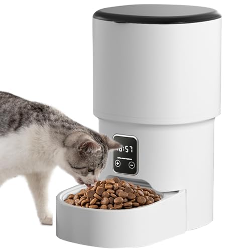 Distributeur Croquettes Chat Automatique - Distributeur Croquettes Chat avec Minuterie Programmable, Distributeur Automatique pour Chats et Petits Chiens, 1-6 Repas par Jour (Blanc, 5L)