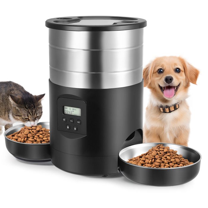 Croquettes Chat Automatique Double 5L INOX Distributeur Croquettes Chien avec 2 Bols Mangeoire Programmable pour Petite/Moyenne