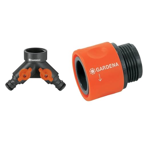 Gardena Vanne à 2 voies: Distributeur d'eau pour robinet avec filetage de 26,5 mm & Pièce de tube de transition: pièce de connexion en tant que transition d'un raccord de tuyau