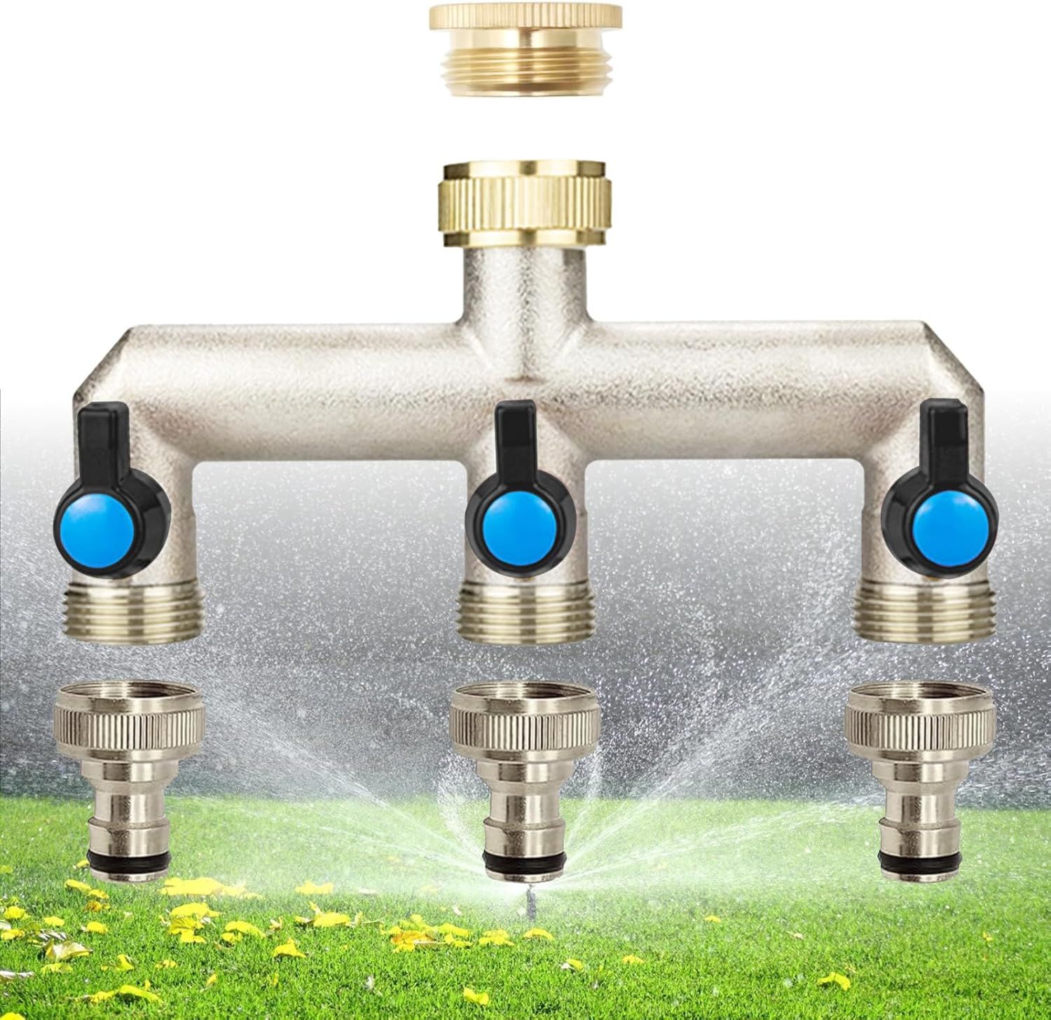 ASFASFq-Gardena Distributeur d'eau à 3 voies en laiton avec 3 adaptateurs 3/4"" vers 1/2"" pour régler et fermer le débit d'eau, pour tuyau d'arrosage