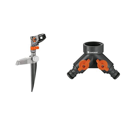 Arroseur-Canon sur pic Comfort de Gardena : arroseur de Grande Surface pour l'arrosage de Surfaces de 75 à 490 m² & Vanne à 2 Voies: Distributeur d'eau pour Robinet avec Filetage de 26,5 mm