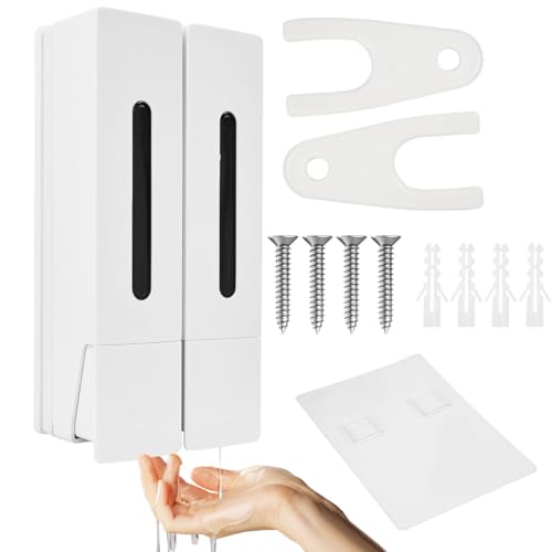 Double distributeur de gel douche mural de 400 ml – Organiseur de salle de bain en plastique avec fixation à vis et support adhésif (sans dommage) – Rechargeable pour la maison, la cuisine et l'hôtel