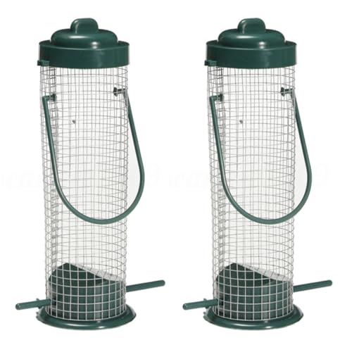 DECHOUS Lot de 2 Mangeoires à Oiseaux Extérieures Vert Foncé en Plastique Filet, Mangeoire Suspendue Solide pour Jardin, Distributeur de Graines pour Oiseaux Sauvages, Accessoire