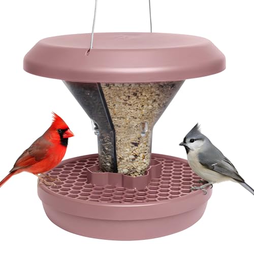 SWISSINNO Mangeoire Oiseaux Extérieur à Suspendre - Davos Smart Birds - Anti Rats et Souris avec Plateau Récupérateur - Distributeur Graines - Jardin et Balcon – Rose poussiéreux