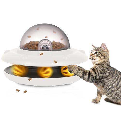 UFO Automatique Chat Slow Feed Interactive Puzzle Toy 50g / 1.76oz Distributeur de Nourriture pour Chat avec Batterie Rechargeable intégrée pour Petit Chien de Compagnie intérieur Dry Goods (Blanc)