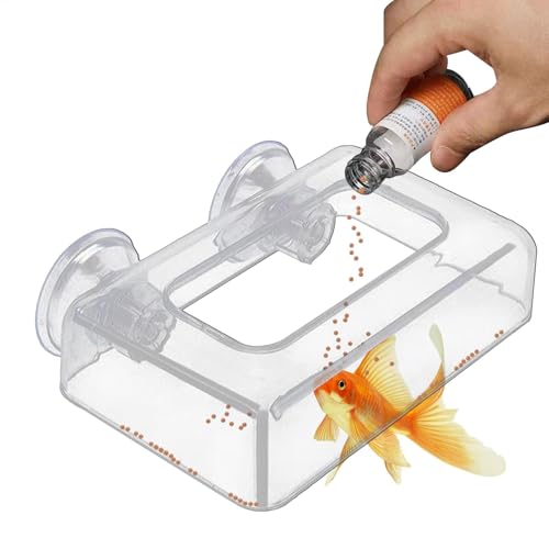 Hogvinnatil Distributeur de nourriture pour poissons d'aquarium | Plateau d'alimentation transparent pour aquarium - Équipement d'alimentation avec ventouse, anneau anti-dérive et filet anti-fuite