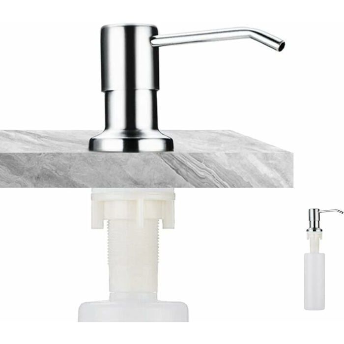 Distributeur de Savon Encastrable Distributeur Savon Evier Cuisine Acier Inoxydable Distributeur Savon Integre avec Bouteille 500M