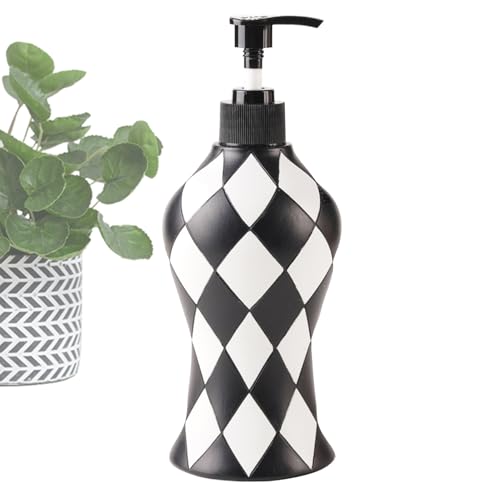Distributeur de savon liquide à carreaux de 20,5 cm, récipient à pompe rechargeable, accessoire vintage élégant en résine PP | Outil de nettoyage pratique pour évier de maison pour une utilisation