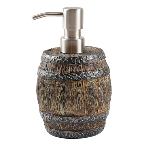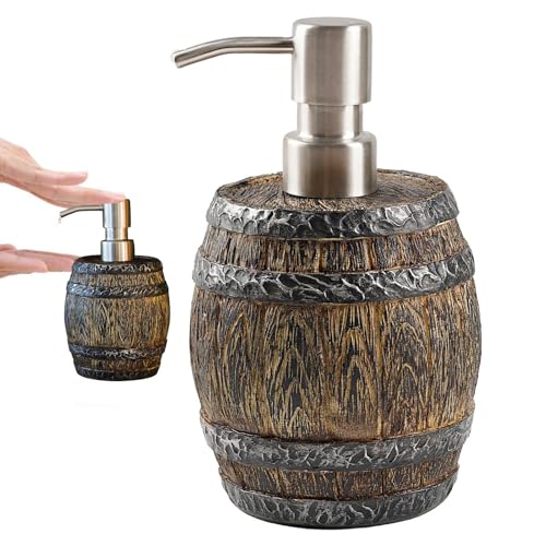 Distributeur de savon avec seau en bois - Pompe à liquide en fût vintage | Distributeur de cuisine en bois imitation résine | Support pour lotion de lavage à la main pour décoration