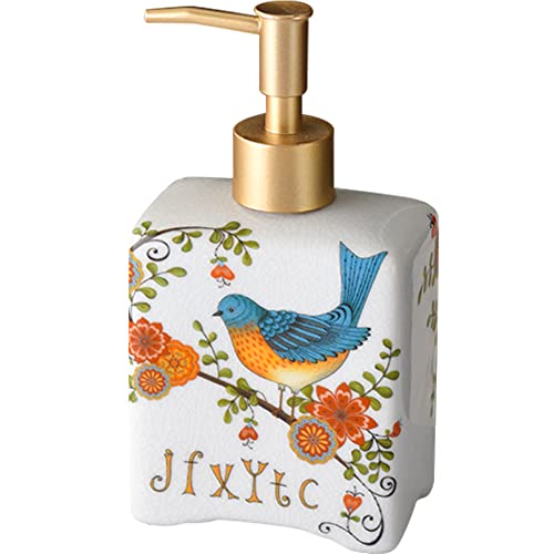 WAYUTO Distributeur de Savon Liquide Vintage en céramique de 355 ML pour comptoir de Cuisine, Salle de Bain, Distributeur de Savon décoratif en Porcelaine Florale Antique, Pie Blanche