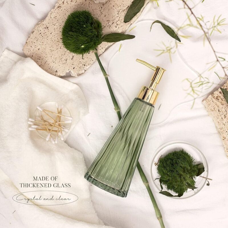 YunNasi Distributeur de Savon avec Pompe en Acier Inoxydable, Design en Cristal Transparent, Vintage et élégant, Rechargeable, Distributeur de Savon Liquide pour comptoir de Salle de Bain, évier de