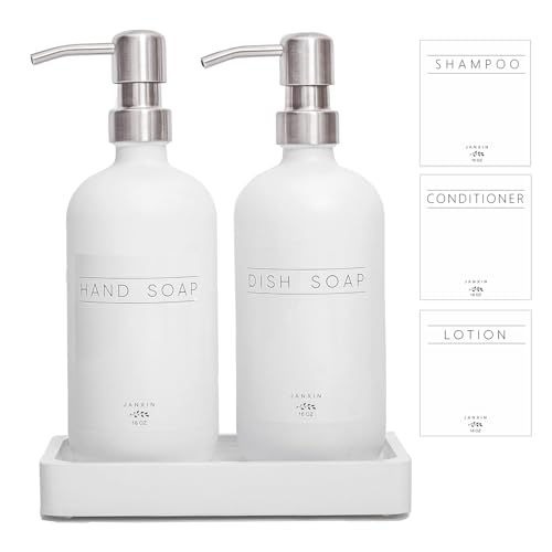 Prus Waso Distributeur de Savon en Verre et Acier Inoxydable pour comptoirs de Cuisine (Blanc)