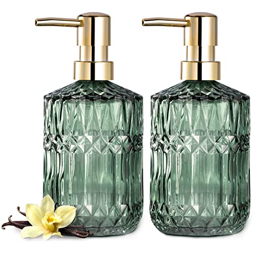 EMPO Distributeur de Savon en Verre Transparent avec Pompe en Plastique ABS, distributeurs de Lotion pour Cuisine, Salle de Bain (2 Paquets Vert)