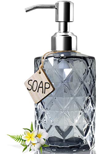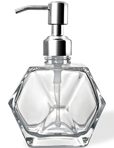 JASAI Diamond Design Distributeur de Savon en Verre avec Pompe à Savon en Acier Inoxydable 304, 340 ML, Distributeur de Savon de Cuisine pour Salle de Bain, Savon pour Les Mains, Savon à Vaisselle