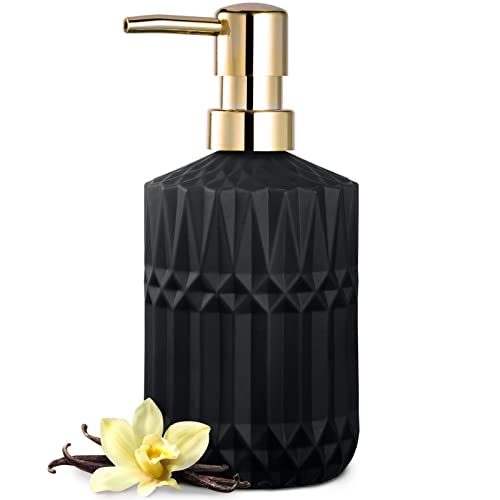 EMPO Distributeur de Savon en Verre Transparent avec Pompe en Plastique ABS, Distributeur de Lotion pour Cuisine, Salle de Bain (Noir)