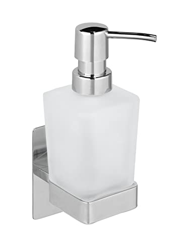 Wenko Turbo-Loc Genova Shine, 200 ML, Fixation Liquide sans Perçage, Support en Acier Inoxydable, Distributeur de Savon en Verre Satiné, 6,2 X 19,7 X 9 Cm, Brillant, 6,2 X 19,7 X 9 Cm