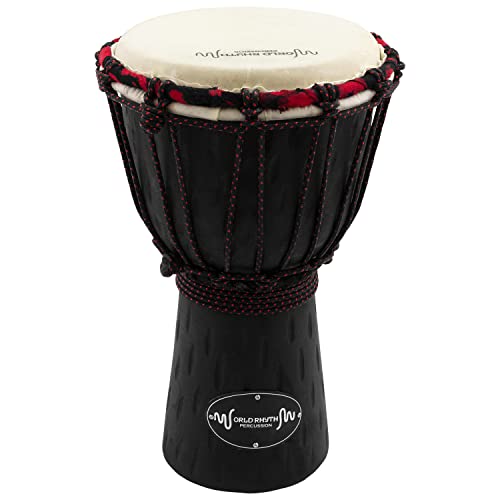 World Rhythm Djembé 50 cm (20") avec tête synthétique de 24,1 cm - Tambour de style africain sculpté à la main pour interprètes, cercles de tambour, écoles, ateliers de groupe