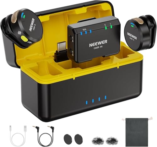 NEEWER CM29 Micro sans Fil Mini,Mic Cravate à Pince avec Réduction de Bruit 48 kHz/24 Bits,Autonomie de 25h,Portée de 150m,Compatible avec iPhone iPad Android DJI Insta360 PC Mac (1RX+2TX+étui Charge)