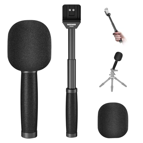 NEEWER 13"/33cm Microphone Lavalier Télescopique à Main avec Anti-Off Cold Shoe Mousse Bonnette Interview Micro Poignée Compatible avec Rode Wireless Go II DJI Mic NEEWER CM22/CM28/CM28PRO/CM31, MS005