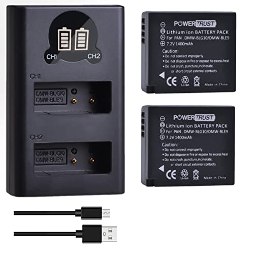PowerTrust Lot de 2 batteries DMW-BLG10 DMW-BLG10E avec chargeur pour Panasonic Lumix DC-GX9 DMC-GF6 GF5 GX7 LX100 GF3 GX80 GX85 ZS60 TZ80 TZ95 ZS100 TZ100 TZ101 DC-G100 TZ900 ZS70.