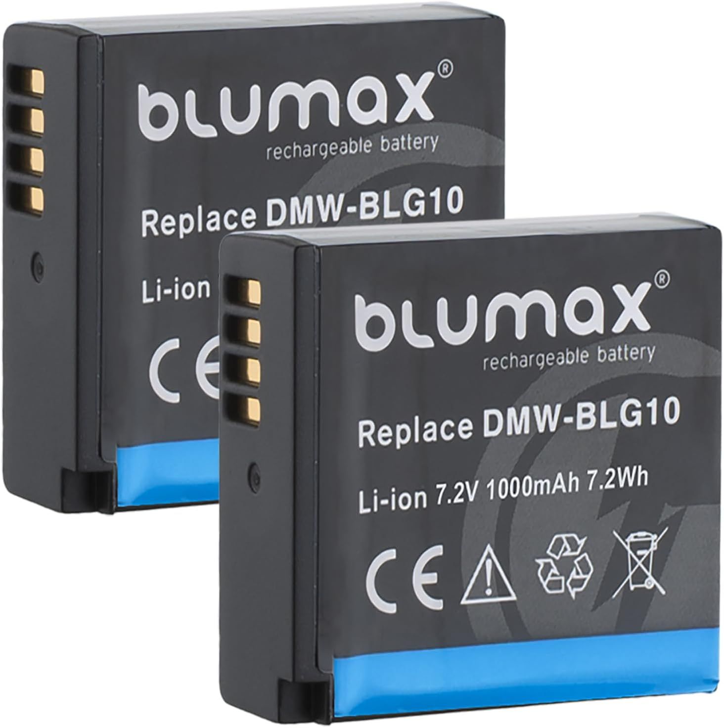 Blumax Batterie DMW-BLG10 BLG10e - 1025 mAh 7,2 V 7,4 Wh et emballage respectueux de l'environnement - Compatible avec Panasonic Lumix DC-TZ95D DC-GX9 TZ202 TZ91 DMC TZ101 TZ81 GF6 GX7 GX80 LX100 G110