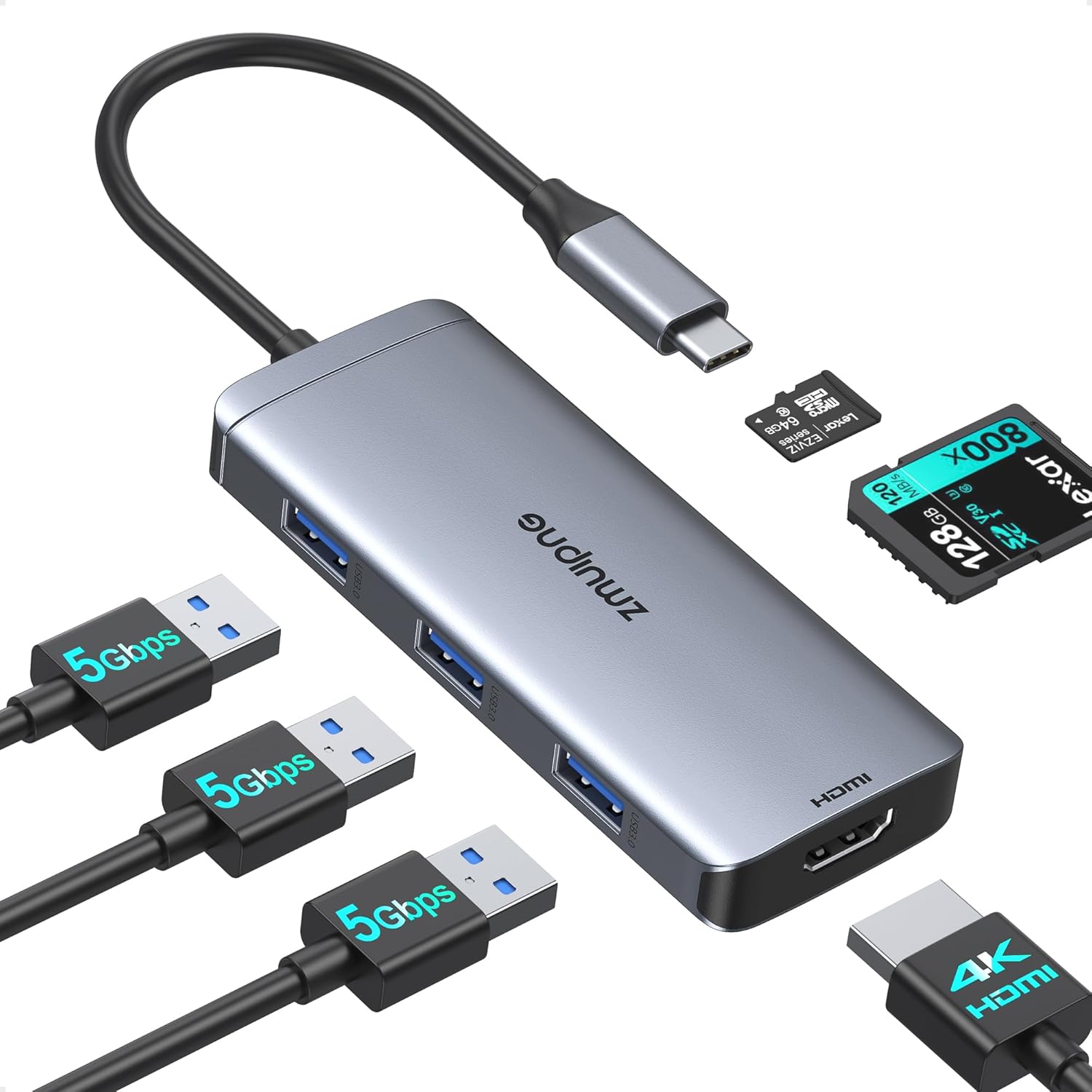 Hub USB C, Adaptateur multiport USB C 7 en 1 avec 4K HDMI, PD 100W, 3 USB-A 3.0 5Gbps, Lecteur Carte SD/TF, Dock USB C pour Ordinateur Portable MacBook Pro/Air, iPhone 15,Surface Pro,iPad,Steam Deck