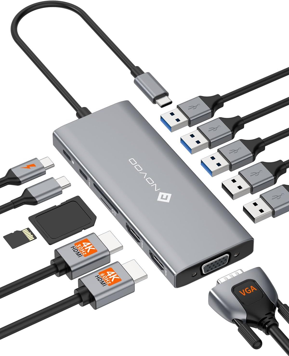 NOVOO Docking Station 11 en 1, Hub USB C Double HDMI, Multiport Dock USB C vers USB x 4, PD 100W, Gigabit Ethernet, Lecteur de Carte SD/TF, Station d'accueil pour MacBook Air Pro HP Dell XPS