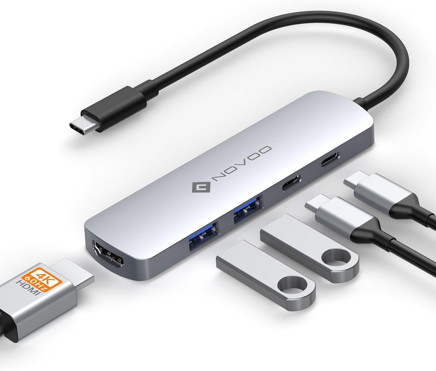 NOVOO Hub USB C 5 en 1 Adaptateur USB C vers HDMI 4K 60Hz, USB 3.0 x 2, Type C PD 100W Recharge, USB C x 1, USB C Dock pour Macbook Air Pro