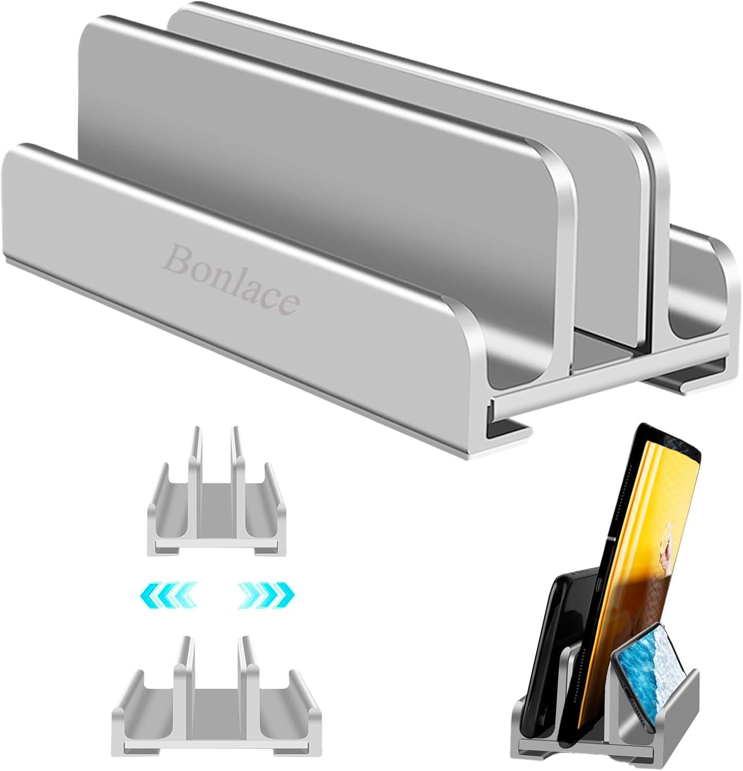 Bonlace Support Vertical Pc Ordinateur Portable, 3 en 1 Support Laptop Triple Fente Porte en Aluminium Réglable Rangement sur Bureau, Support Dock Compatible avec MacBook Pro Air Tablette Smartphone